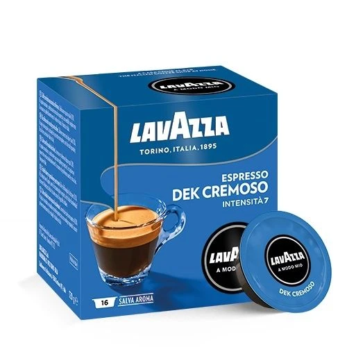 Lavazza A Modo Mio Cremosamente Dek, een cafeïnevrije, zachte en geurige koffie. Een uitzonderlijke melange met een fluweelachtig crèmelaagje. 100% Arabica koffiebonen in een Lavazza capsule. Lavazza A Modo Mio capsules. Inhoud: 16 capsules Nieuwe naam is Lavazza A Modo Mio Dek Cremoso Espresso.