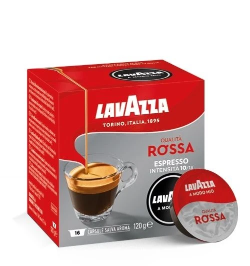 Lavazza A Modo Mio Qualità Rossa, een volle espresso met een rijke en intense smaak, met hints van cacao en gedroogd fruit. Een blend van Braziliaanse arabica koffiebonen voor de perfecte body en de zoetheid van de Afrikaanse en Zuid-Oost Aziatische robusta koffiebonen voor de intensiteit. Een heerlijke koffie voor een energieke start van dag, echte rode Italiaanse passie. Intensiteit 10. Lavazza A Modo Mio capsules. Inhoud: 16 capsules