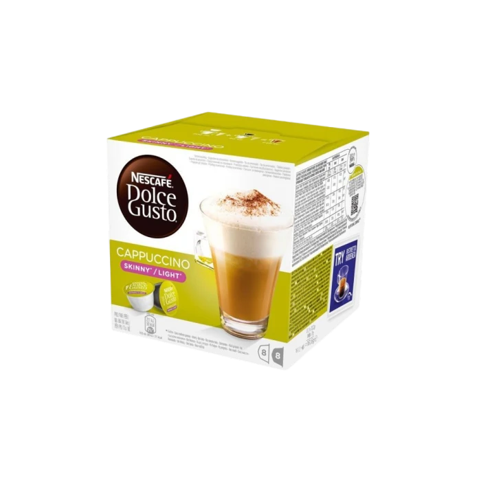 Een rijke espresso met een laag heerlijk magere, lichtzoete melkschuim. Door de magere melk bevat de Cappuccino Light 80% minder vet dan de reguliere Cappuccino.