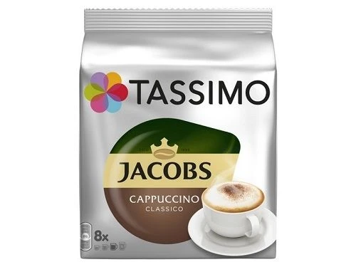 Tassimo Jacobs cappuccino is een heerlijke combinatie van espresso met een heerlijke schuimlaag. Tassimo Jacobs T-discs: Inhoud: 16 capsules (8 koffie en 8 melk)